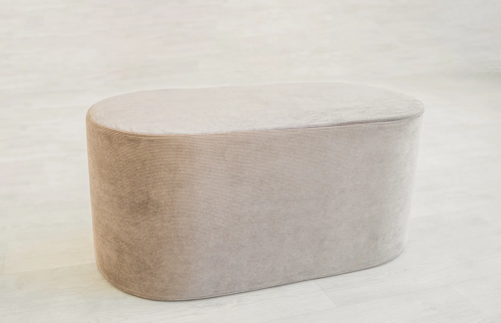 Тапицерията е фина и елегантна, а закръгленият силует без ръбове създава усещане за мекота и хармония. Пейката се вписва с лекота в интериори със скандинавски, органичен или минималистичен стил.